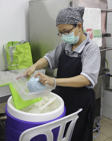 从清晨七时开始,除了厨房开始闹哄哄,亦有志工需要按订单准备便当数量,或把准备好的便当按数量分配,到了上午十时左右,一箱箱的便当才从厨房里送出来。然而,这并不代表工作经已结束,对于一些无法前来提领的订户,志工还得驱车赶在午餐时间前送,把热腾腾的便当送到顾客的手上,才算大功告成。