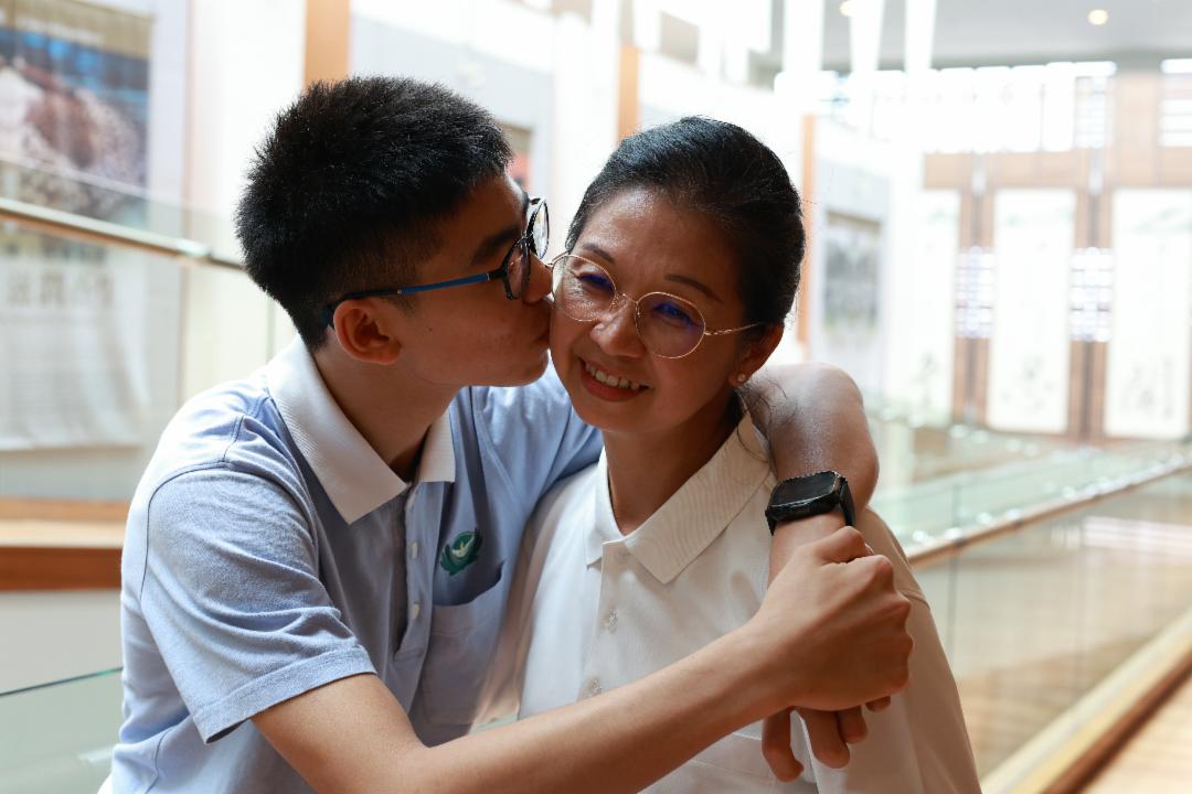 曾经,许毅哲(左)是个不擅表达的硬汉运动员;现在,他主动在大庭广众下拥吻妈妈。【摄影:邓亦绚】