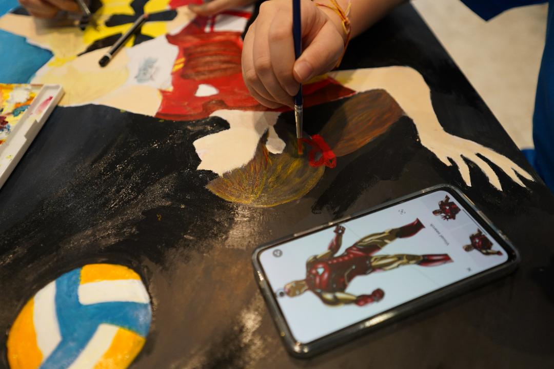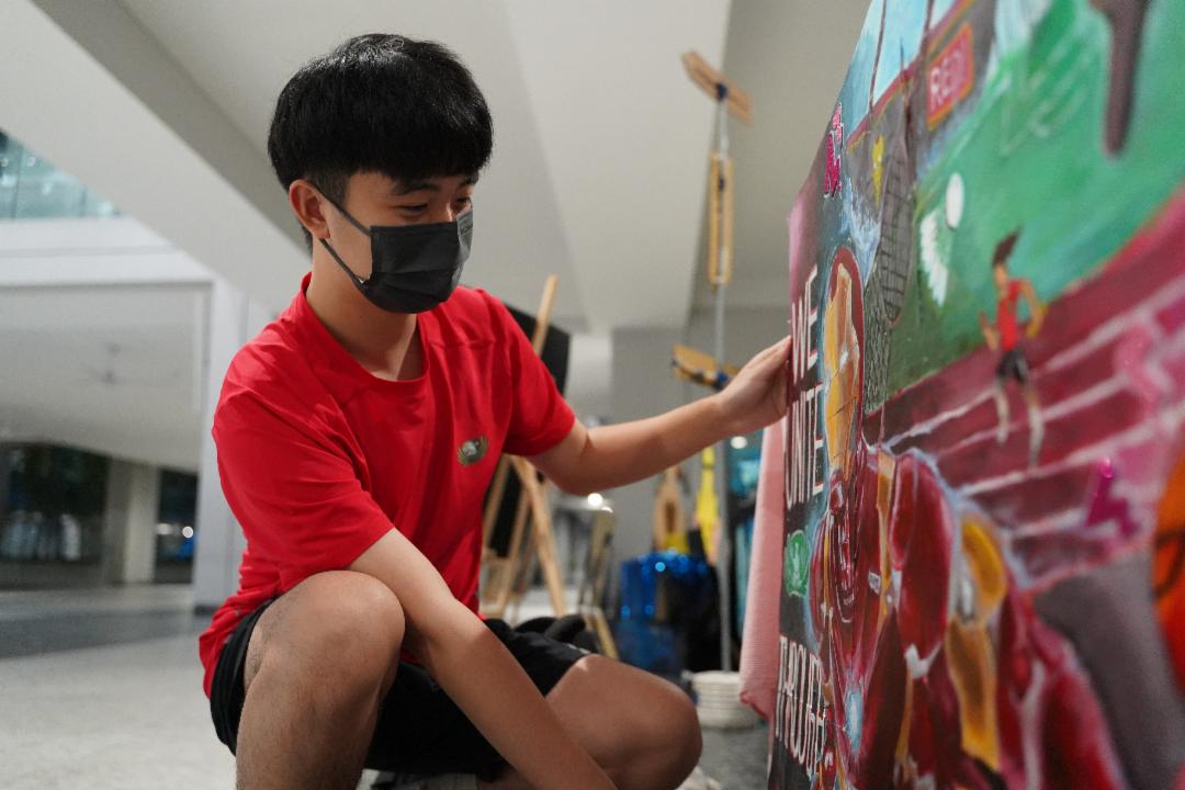 来自十年级信心班的黄炜轩热爱画画,所以主动加入设计组,希望能贡献自己的绘画才能。炜轩与队友主要负责壁画,从一开始的构思、草稿到彩绘上色,他都亲力亲为与老师讨論。在短时间内完成一幅画是很挑战的,炜轩学习到与队友合作协调一起作画,和一些绘画技巧。