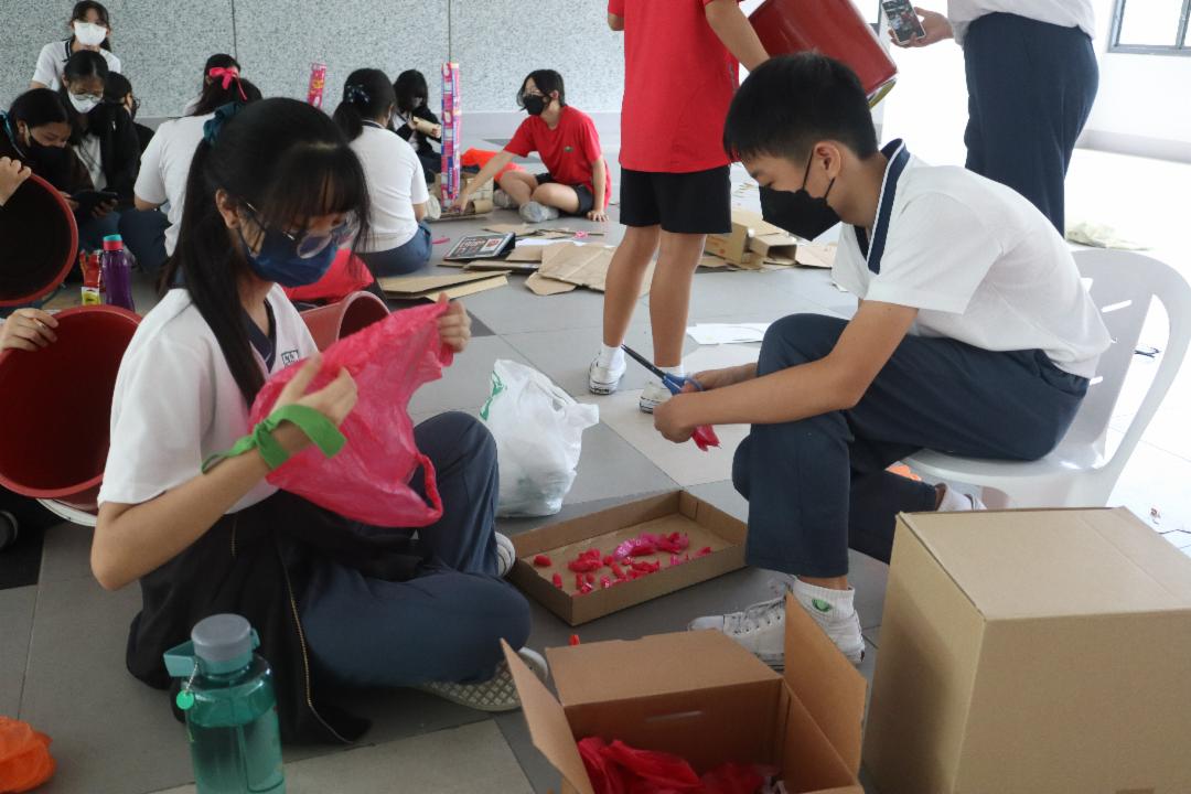 来自八年级合心班的叶如行承担了制作啦啦队彩球的队长。由如行带领的制作小组共有五位成员,他们耗了四天制作了三十个彩球提供红组的啦啦队使用。