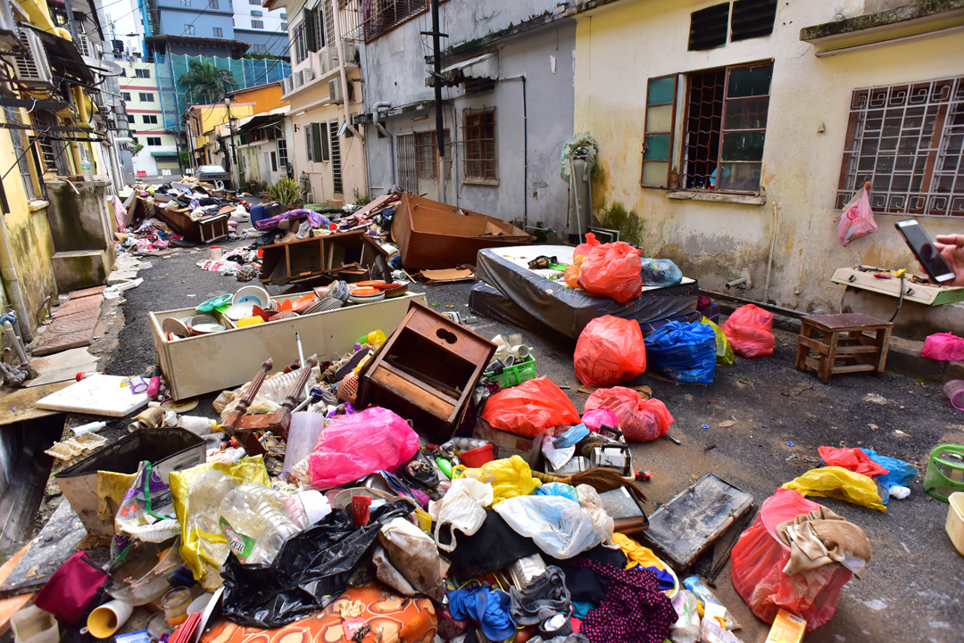 小小中南区的住宅区有好几间寺庙,提供后代子孙们膜拜、追思祖先及乡亲联谊的场所。这是先辈南下打拼时,带来的传统,流传至今。打理回龙宫的刘丽华忘了寺庙是在那一年建立的,只知道它是第一间,也是唯一经历过两次大水灾的寺庙。刘丽华的住家也被水淹了,但打理寺庙是婆婆传承下来的,所以她一点也不敢怠慢。丽华说家里留给媳妇打理,她在庙里协调。丽华在做清理时,发现自己有好多新的衣服都泡水了,变成了沉重的负担。她说有些屋主很快就能将家园恢复到如常,那是因为生活简单,东西少一点,损失没那么大,清理也没那么辛苦,或许这也是水患带来的一个省思。