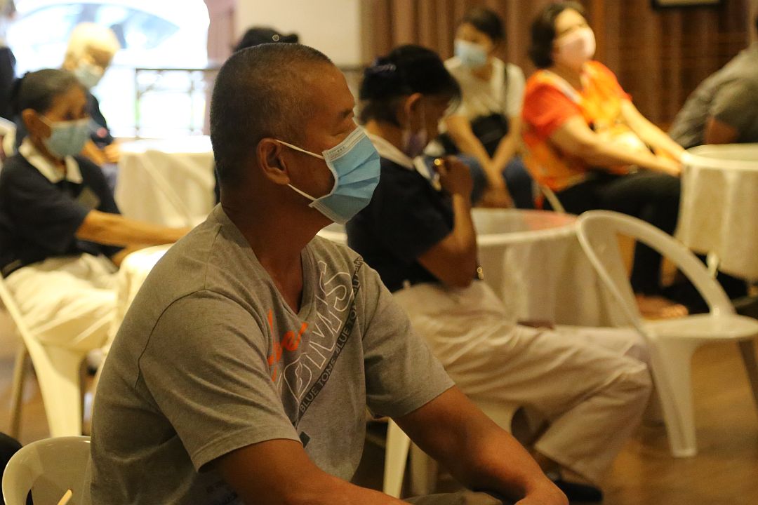 玛琳社区志工关心照顾户的健康,访视时,留意到他们大都是荤食者,身体有三高等问题。有鉴于疫情当道,志工期待让照顾户们了解肉食的来处,以及素食对健康、心灵与地球的好处,刻意规划将社区联谊与素食烹饪课做结合,邀约照顾户们回到静思堂的“家”,一起素素看。当天共有十一位照顾户,逾三十位志工共聚。