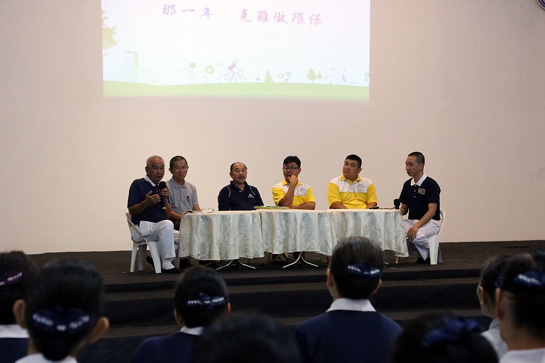 游行前,于4日晚间,环保组志工先举办了一场“五马路斗母宫游行环保宣导说明会”。当晚,除了向志工布达注意事项、默契须知,还有一个特别的环节,就是“莫忘那一年”,邀请了来自南方环保有限公司(SWM Environment)企业资讯执行长朱招成先生、斗母宫理事黄开源及许明辉、慈济志工吴鸿龙(济易)及锺健明(诚志)一起细说环保的因缘,进而让三个不同性质的团体一起共知、共识、共行携手合作。因为大家都有一个共同的目标就是保护环境、减少垃圾,同时提升资源回收及分类的意识。
