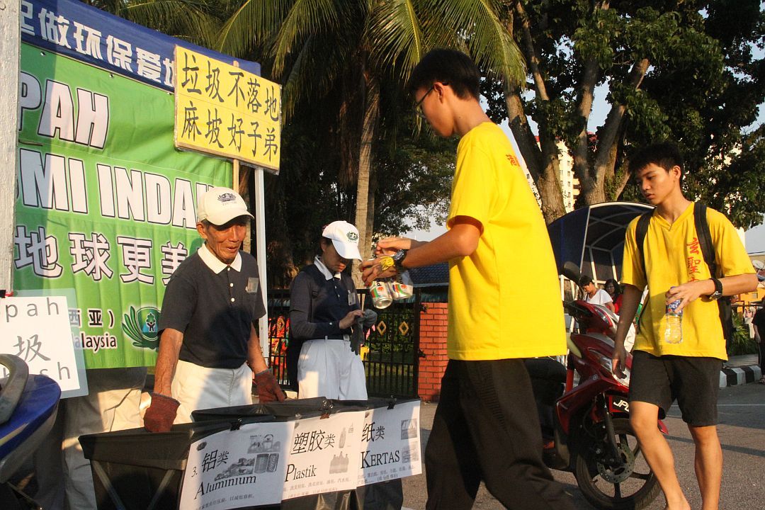 除了减少垃圾量,也不要让资源变垃圾,麻坡五马路斗母宫游行庆典上,志工当场教导民众资源分类。从觉醒到行动,今年看到民众与游行队伍,也会走到回收点,将手上的回收物放入分类箱。