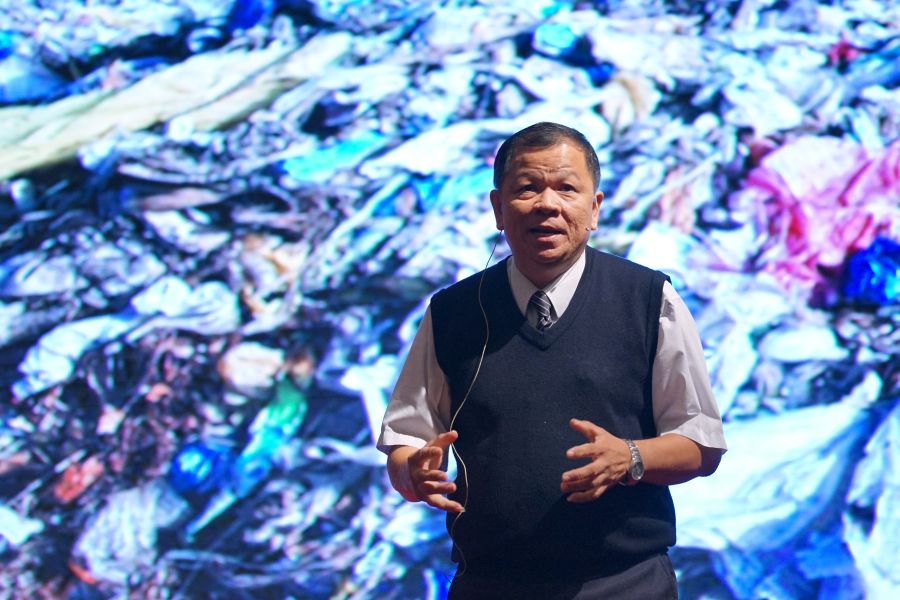 向来藉由回收物来传达环保信息的志工陈辉杰透过环境受污染的视频和简报,深入浅出地分析地球遭受破坏的严重性,他期许透过这次的分享和展览,能让大家正视环保课题,延缓地球暖化,一起为下一代的幸福而努力。