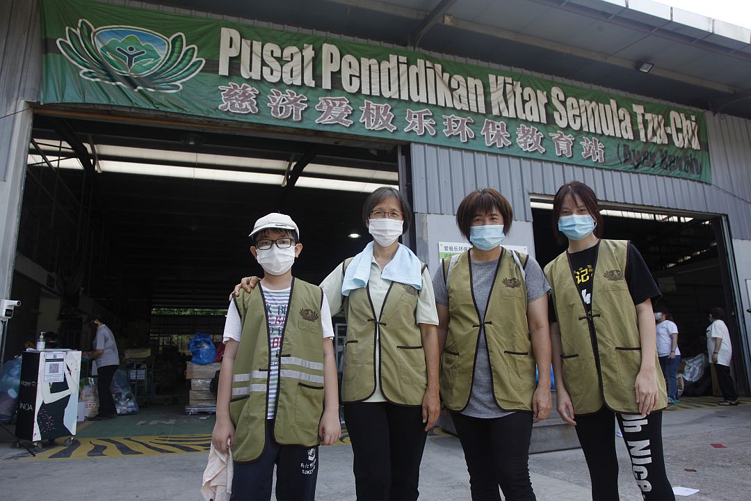 中学老师林素华,几年前邀约慈济进入学校给予环保讲座,因而结识黄雪芳,自此与志工保持联系。今日受黄雪芳邀约便带着十二岁的儿子郭宇捷,以及邀约另一位老师华婉吟,同样也是带着女儿一同参与。
