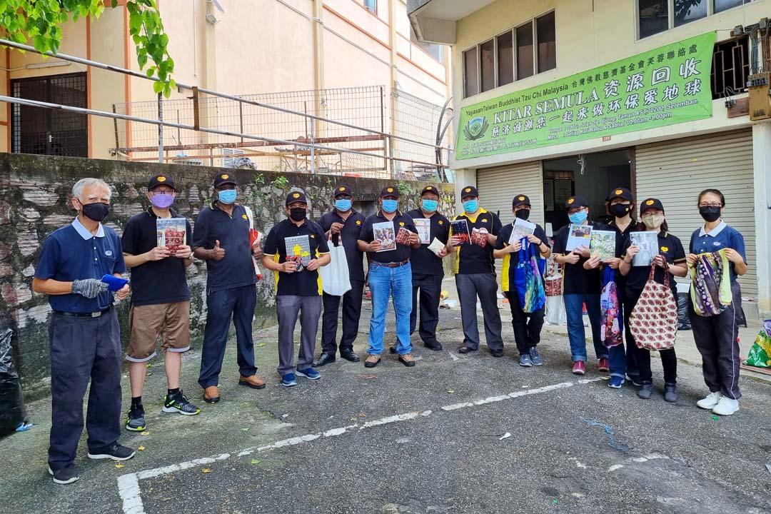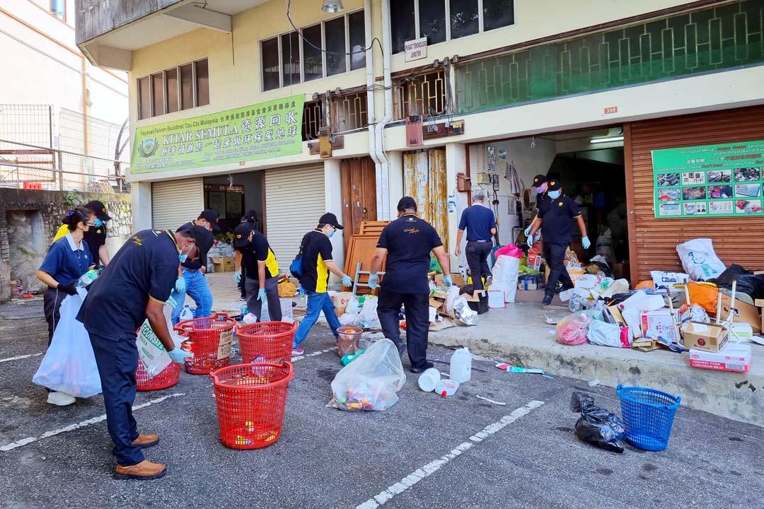 担任森甲区域营运经理的颜福盛分享,万能从今年开始,鼓励全国所有员工每年要参与至少六个小时的公益活动。芙蓉万能爱心队(Magnum Cares)选择来慈济的环保站,是因为知道慈济做很多的公益活动去帮助有需要的群体。十一位员工都是自愿报名参与这次的环保活动。