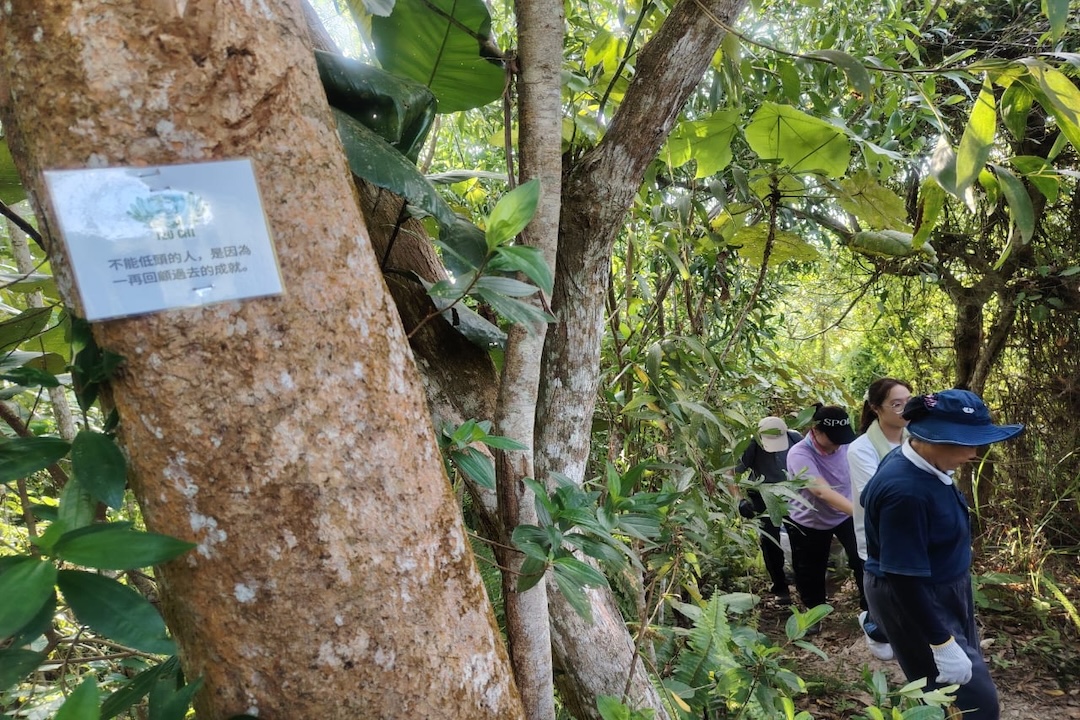 为了让大家在捡跑途中不仅净化环境,更能沉淀心灵,志工们早在活动前细心勘察路线,巧思安排,在山间树干上沿路钉上静思语小卡。 “即便走累停下脚步,也能被上人的法语滋养,重新获得力量。”一位志工微笑着说。涓涓法水,润泽人心,也让首次参与慈济活动的民众感受到慈济独特的人文魅力。