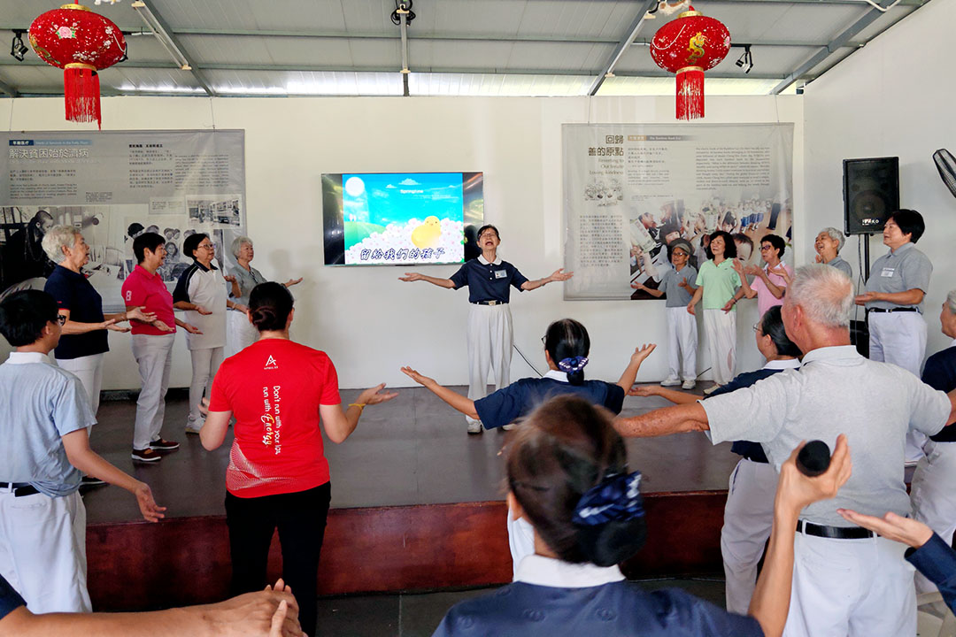 今年茶会最受期待的一环,是合唱班与志工一起带动全场唱跳。〈一起做环保〉和〈一个干净的地球〉旋律响起,大家手舞足蹈、笑声不断,也在歌声和手语中感受“保护地球、人人有责”的理念。随后,全体志工与合唱班又一起进行了大合唱〈小城故事〉、〈人间有爱〉和〈甜蜜蜜〉,歌声响亮而温暖,大家手牵手,笑声与旋律交织,把善念与关怀汇聚在会场每一个角落。
