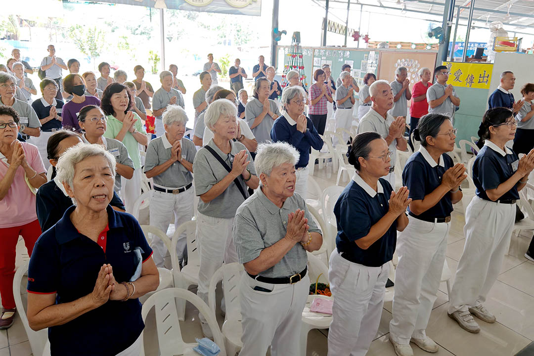 茶会进入尾声,所有志工共同进行祈祷,心中默默祝福世界平安、地球健康。随后,全体合唱〈供养歌〉,象征着志工们的善念与行动同心汇聚,延续慈济精神。