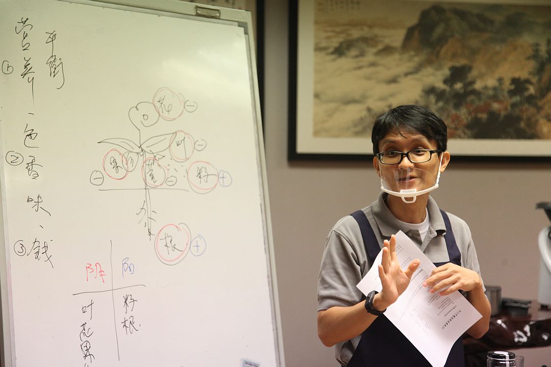 黄其铫老师在白板上画着植物形态,解说植物各部位的阴阳属性,以及如何配合一天作息,选择合适的食材;同时间也借着他丰富的人生经历,幽默点出人生哲理,时不时引起台下意会笑声。原来,中华文化的阴阳之说,并非古书里深奥难明的道理,而是如此密切融入于柴米油盐,甚至待人处事当中,只要知其所需,拿捏得宜,自然就可以平衡。