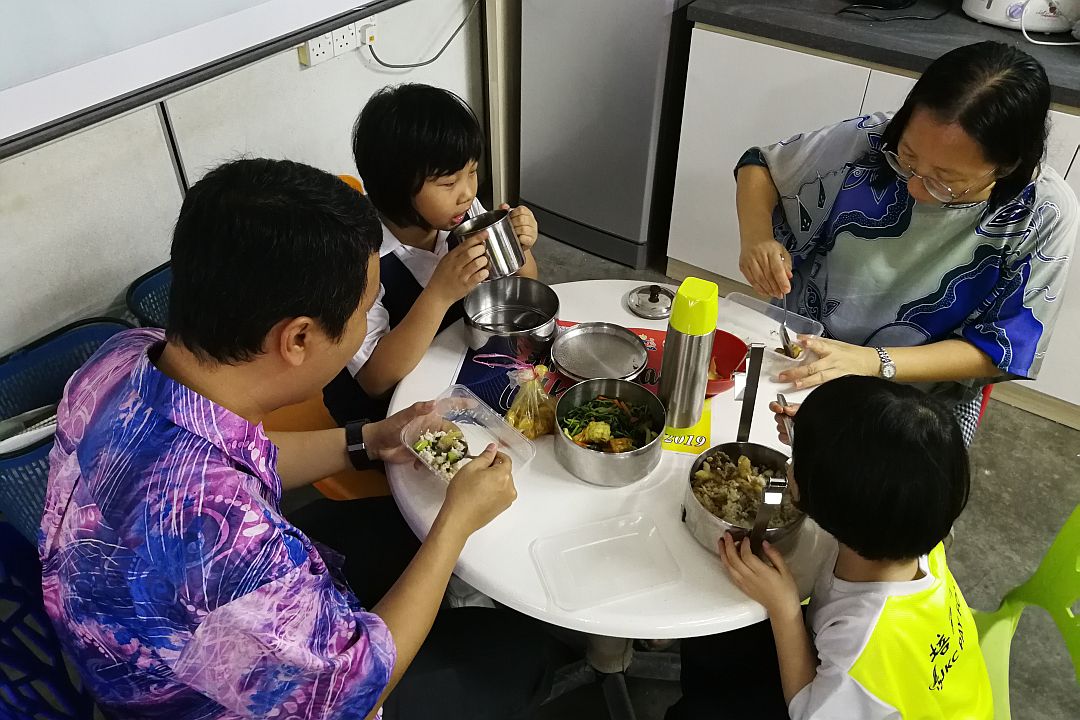 “以前烦恼放学后要去哪里打包给孩子,到处去张罗午餐,有时学校有活动或有突发事件就会耽误了午餐时间。现在统一订购,真的让我们茹素者更方便。”她表示,孩子们就读此间学校,先生则在另一间国小教书,全家放学后都是聚集在这里享用午餐,之后才一起回家。