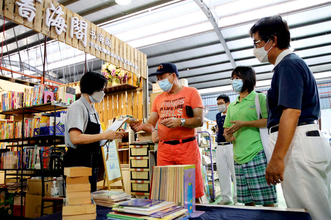 喜爱阅读又喜好买书的赖琼芳,每当阅读完后处理书籍让她很头痛,家里无法堆置只能到处找地方捐书。最后没办法只能改为到图书馆借阅,但是疫情期间许多图书馆关闭或是学校图书馆禁止外面人士进入,今天来到“书海阁”让她如发现新大陆般兴奋,直呼太开心了!