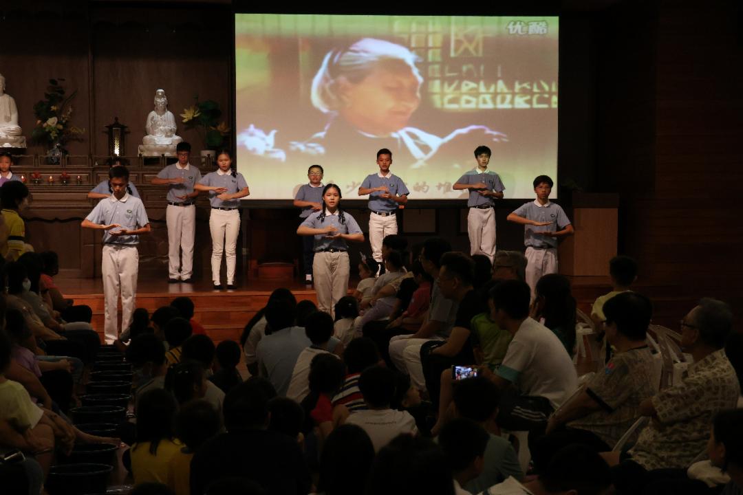 由二十位慈少和慈青呈现的〈跪羊图〉手语,表达对父母的感恩与敬爱。手语演绎的每一个动作,都充满了深情的敬意,让亲子们感受到了孝道的深远意义。手语演绎的无声之美,不仅对父母们,也是对社会的呼唤。通过他们的演绎,让大家看见了孝道文化在新一代人中传承与发扬。感恩与爱,不需要华丽的辞藻,而在于真诚的表达内心的感动。