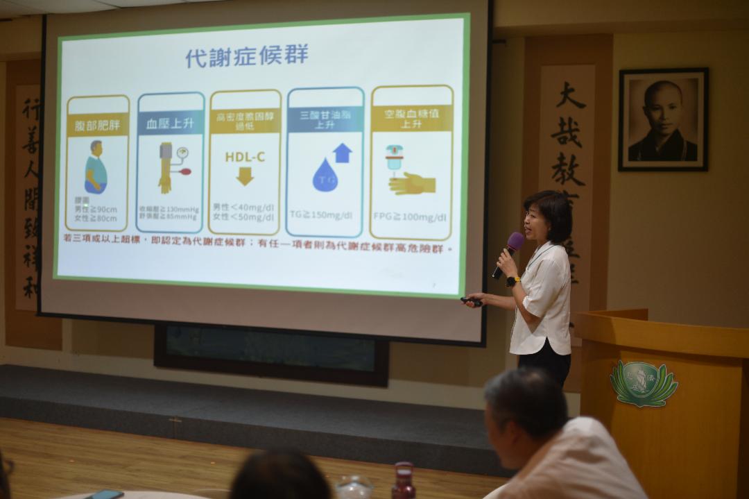 讲座会以简介慈大公卫系为开场,让会众借此认识与了解该科系。因为疫情,台湾通过了“公共卫生师”法(备注) ,为亚洲通过“公共卫生师法”的第一例。紧接着,即进入了当晚的重点 ——分享代谢症候群的定义、症状、风险、预防及管理,为会众提供重要的健康信息和教育,将所学落实在日常生活中。