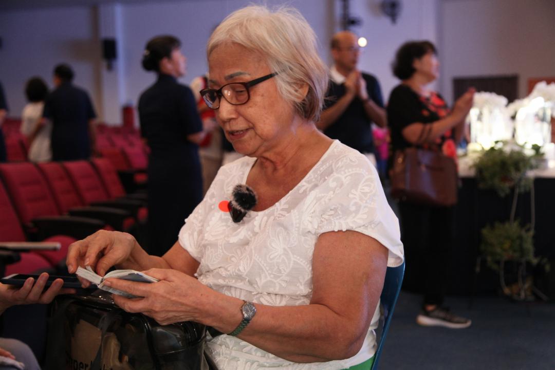 当播放上人开示的影片时,邱明月听到上人提醒大家要记得报答父母恩,不禁忆起往生的父母而热泪盈眶。作为虔诚的佛教徒,邱明月觉得慈济的浴佛仪式与众不同。 “很有次序,手怎么放、怎么接花,浴佛的每个动作感觉都很虔诚。”