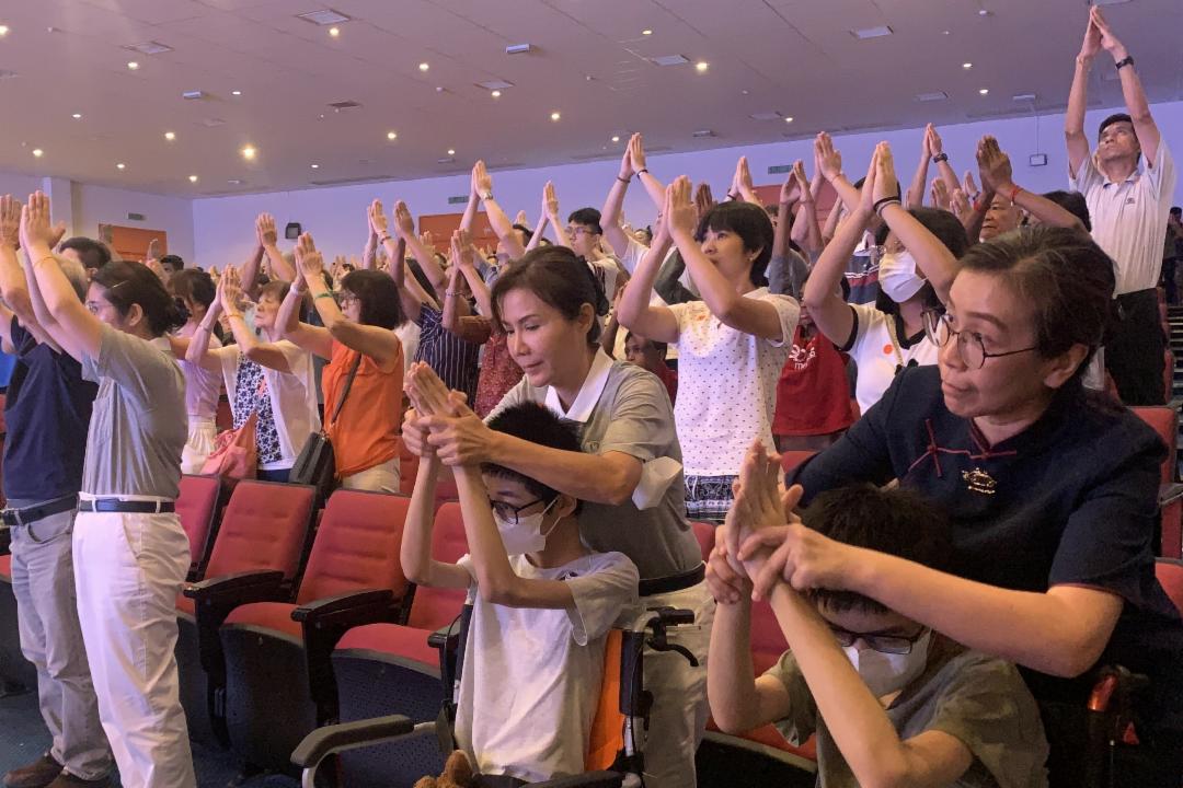 其中穿插志工邹晓玲(慈诠)分享的人生跌宕,让有抑郁症的她在接触慈济后,终找到“回家之路”而重生。 〈跪羊图〉的手语演绎为五月的母亲节做了最温馨的回馈,也为当天的社区浴佛典礼留下令人难忘的画面。