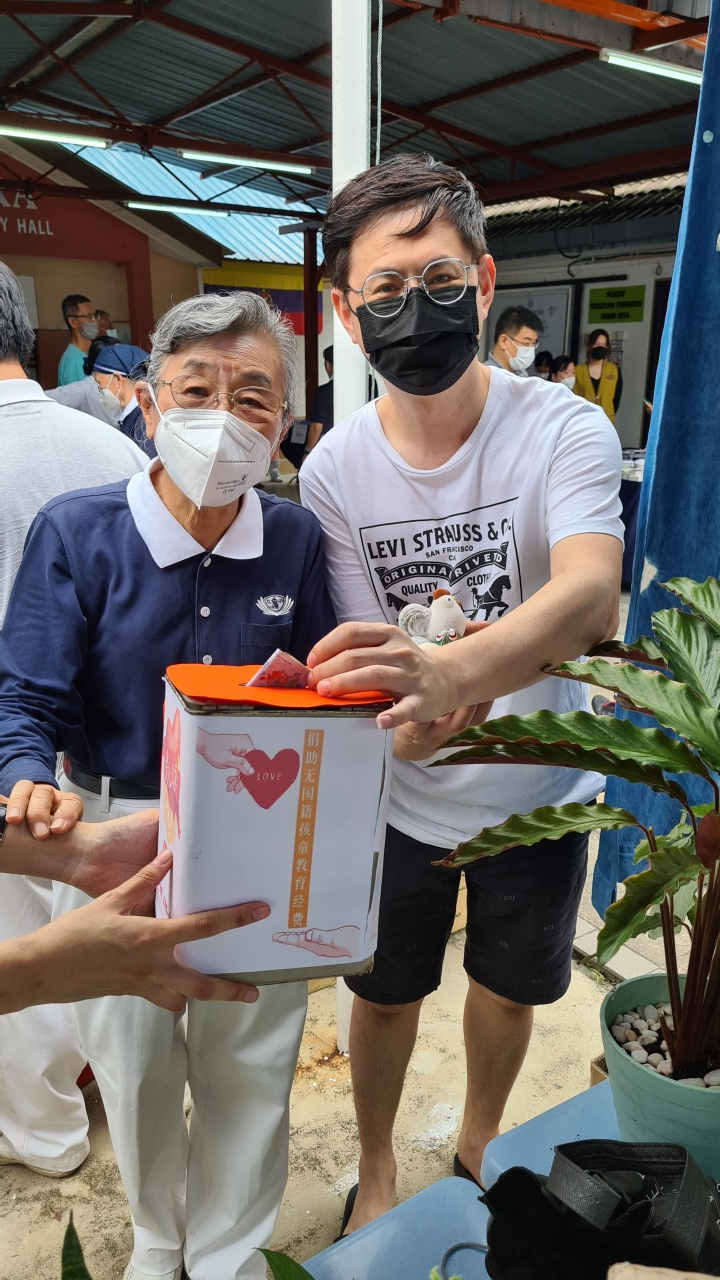 郊外岭居民协会主席黄振财,当被征询借出场地时, 毫不犹豫就答应。 “协会自行动管制令以来就没办过活动,慈济要求借这里做善事,我们义不容辞,因为需要帮助的人很多,包括那些无国籍儿童。” 11月1 3日,他也带领协会理事们一起来摆卖食物。 “要做好一件事,大家一定要互相配合,这样可以帮到更多人。”他笑哈哈的说。