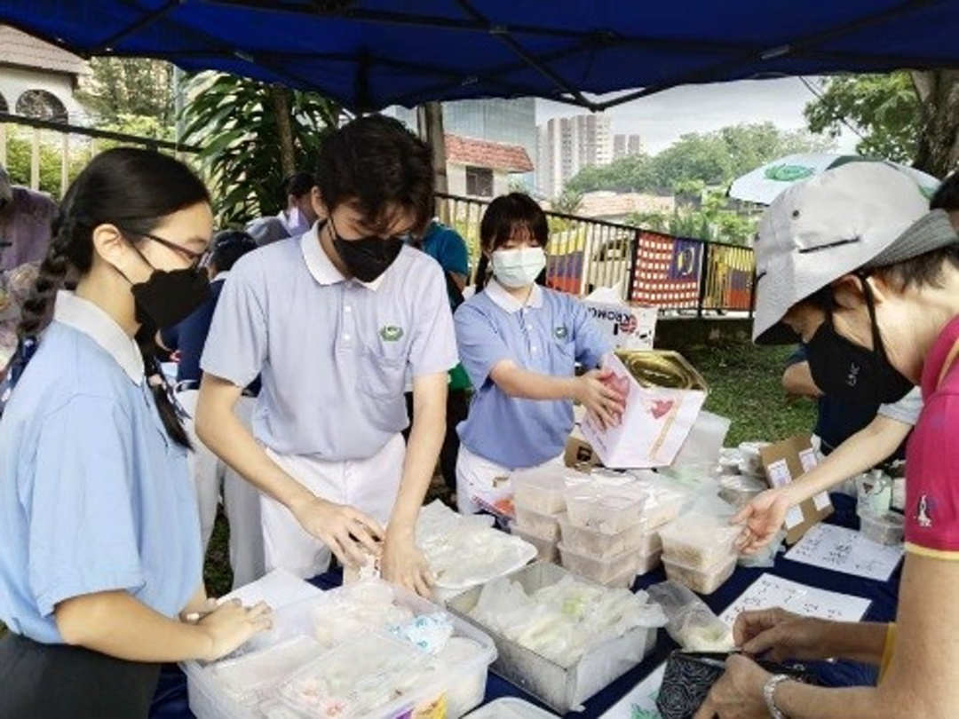 1 1月1 3日旧巴生路郊外岭的义卖会场,社区教育团队安排慈少进阶班的大孩子出来参与,包括张嘉恩和黄恺欣共七位。切水果、在打卡区站岗、推售产品,虽然开始时有些手忙脚乱,大家互相补位,在笑声和汗水中完成任务。嘉恩分享: “有机会付出要感恩,我从中学到了惜福,因为上学对无国籍孩子是很艰难的事,我一出生就有这个机会,比他们幸运得多。”