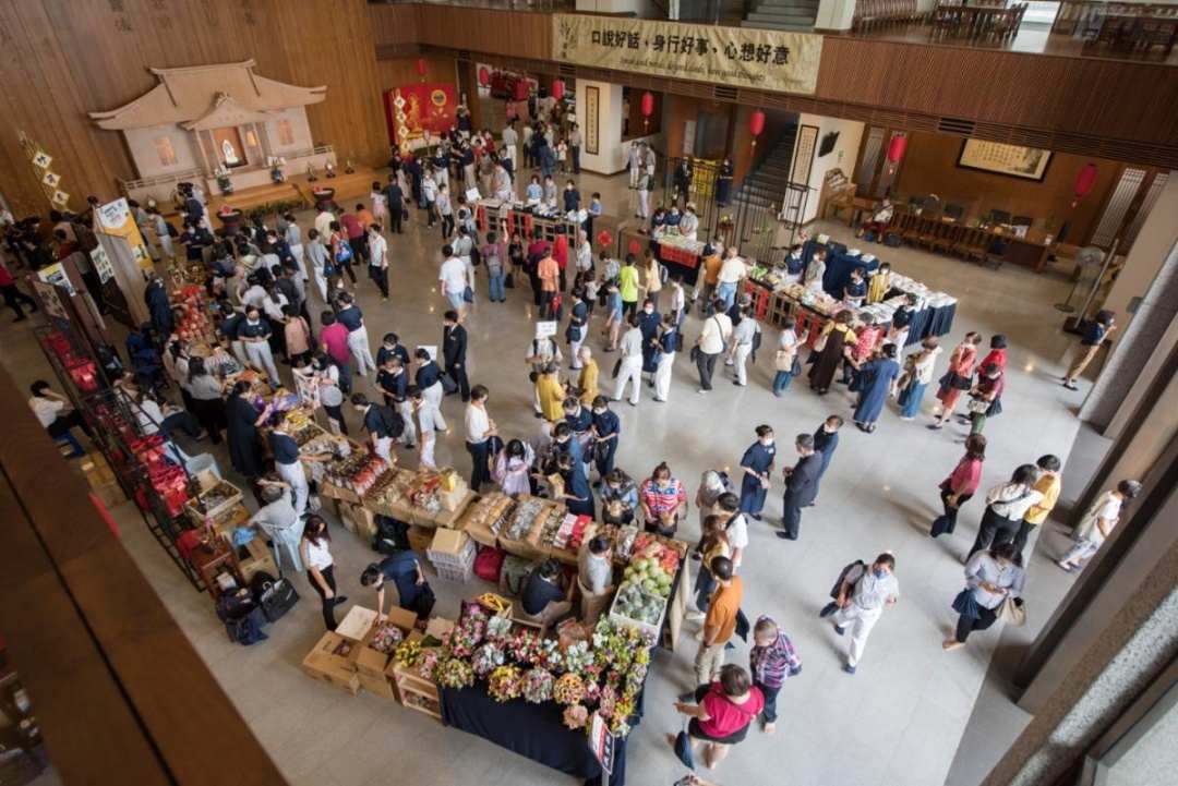 晴朗的早晨带点闷热,没有一丝微风,却无阻会众赶往吉隆坡慈济静思堂参与岁末祝福的热情。早上八点多,一辆辆旅游巴士把一群又一群的会众送到静思堂门口;驱车前来的会众或志工,亦陆续抵达。踏入人文厅,悠扬轻快的新春乐曲飘入耳里,令人心情顿时变得愉悦,脚下步伐不由得轻松起来。摆放在人文厅的档口,有静思产品,也有发心大德和难民为驰援土耳其和叙利亚地震灾民筹款而义卖的各种东西如水果、干粮、糕点、汤包、手工织品、酵素饮料等等。这让人文厅顿时显得格外热闹与拥挤,也是爱心的凝集地。