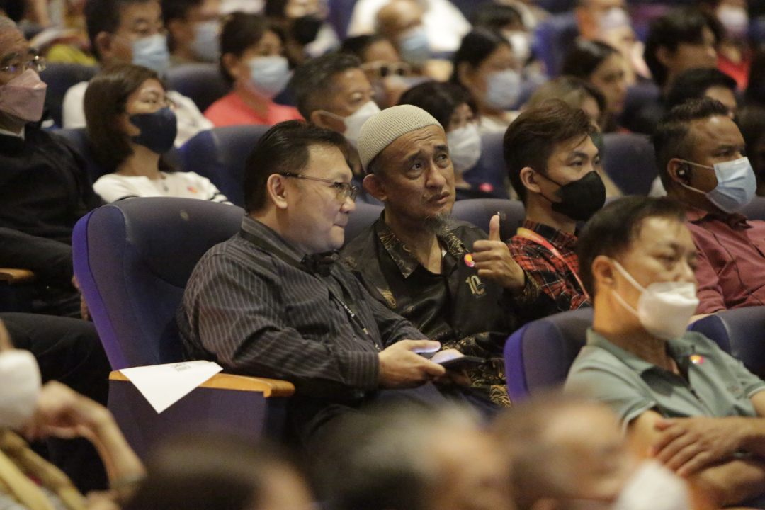 节目开始前,志工们笑脸盈盈地迎领会众入座预先安排的场地,这让许多会众不由得赞叹慈济志工的亲和力,让他们有回到家的归属感。回顾2022年,世界各地发生的天灾人祸之大事,慈济志工极力应援各地的动向;荧幕上各种苦难众生的苦相,触动会众的心灵;一些会众默默地拭泪,有的则紧闭双唇以泪眼继续观赏影片。