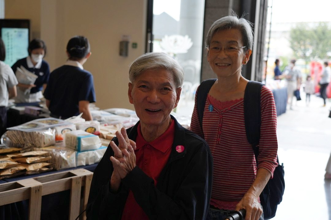 七十六岁的张元豪老先生和六十五岁太太杜玉丝初次参与岁末祝福。在看了大藏经后,元豪老先生对十三年沉浸在中风之苦的心结已解开。 【摄影:翁书霖】