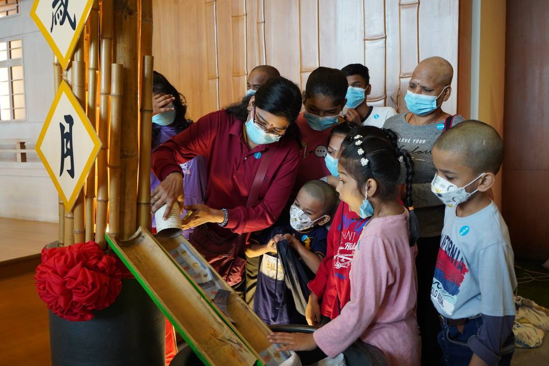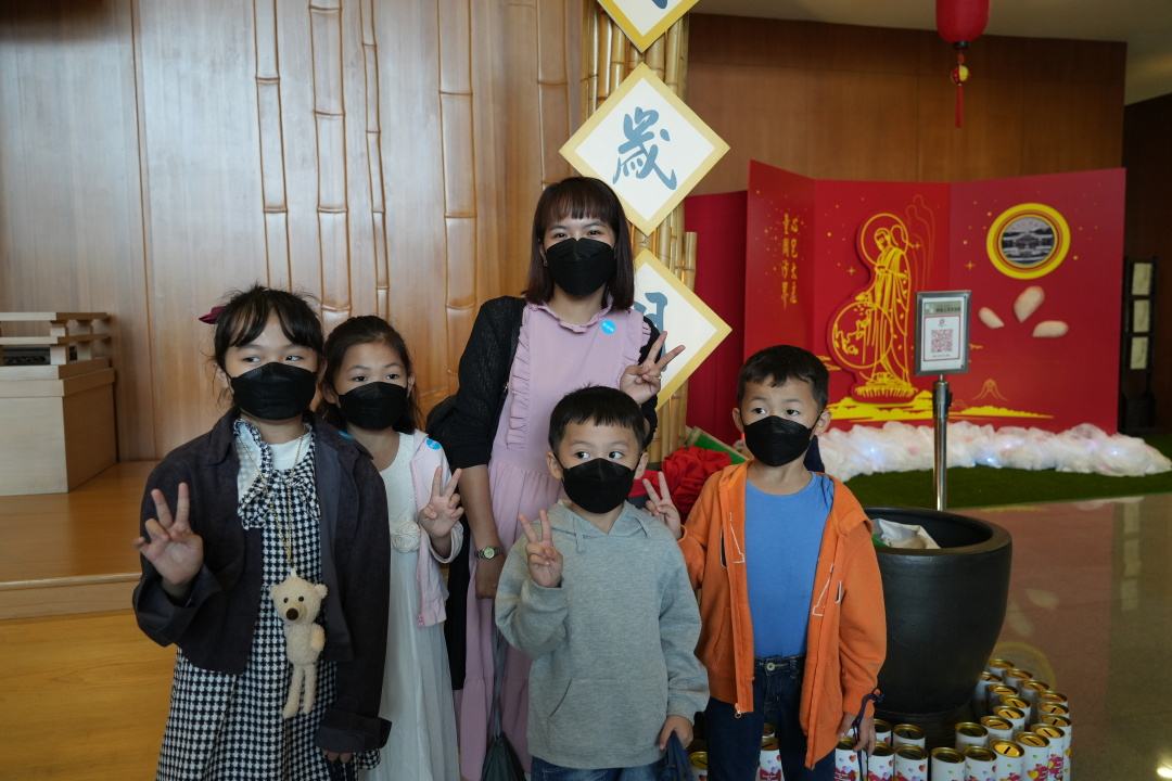 人文厅两侧,是“竹筒回娘家”兼拍照打卡区。美丽夺目的摆设,让会众都忍不住驻足拍照留念。每位把竹筒带回来的会众,把爱心零钱倒入瓮里,叮叮当当的声音悦耳,笑得合不拢嘴的喜悦脸庞拍照留下;一旁站岗的志工也笑盈盈地分享着这份大爱的喜悦。而在人文厅正中央有个放置祈愿卡的瓮,里头都是装满了会众的愿望。