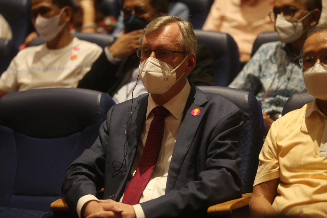 马来西亚联合国难民署(UNHCR)UNHCR)代表汤姆士( Mr.Thomas Albrecht)对马来西亚难民所做出的贡献深表感激,同时赞叹慈济在人道援助不仅救拔苦难,也治愈难民心灵创伤。【摄影:庄贵贺】