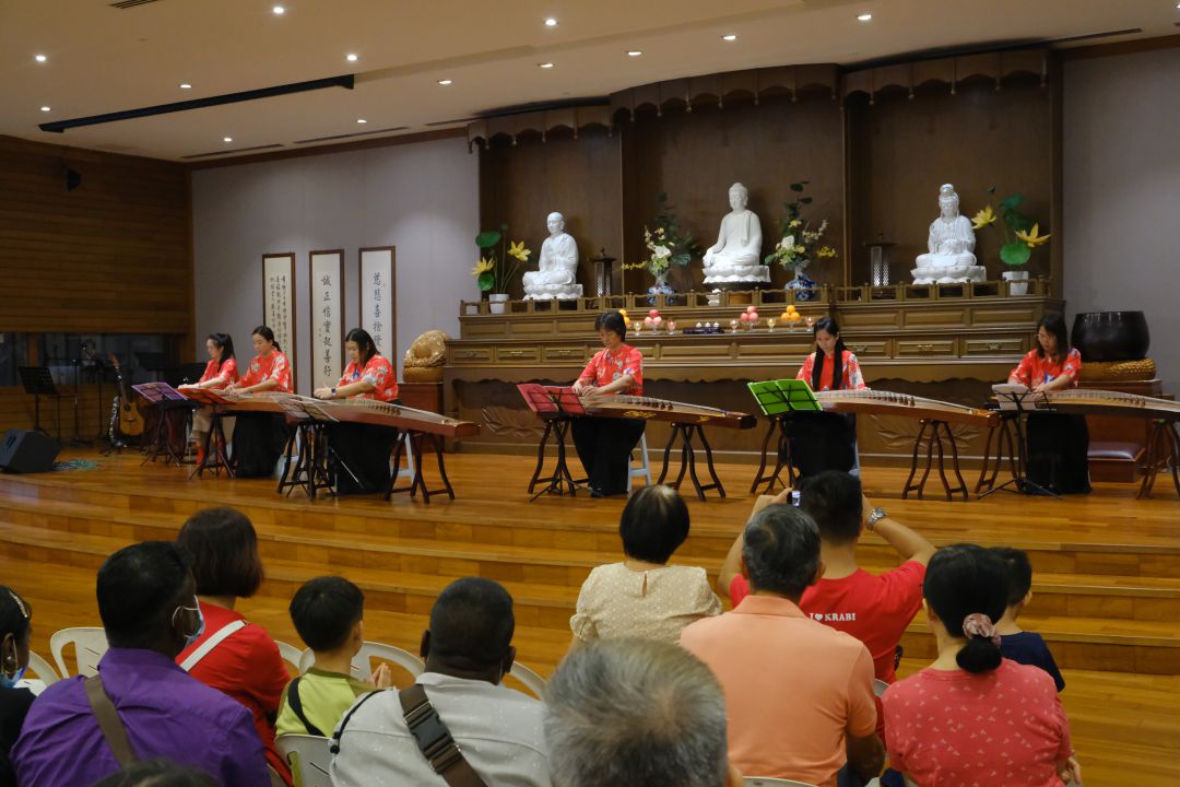 随后,古筝表演让传统文化更加耀眼。来自慈济社会教育推广中心的六位成员组成了一个团队,演奏〈妈妈好〉和〈小白船〉。尽管她们仅练习三个月,却以整齐的配合赢得满堂喝彩。另一组成员则演奏了〈荷塘月色〉和〈China-E〉,展现了自信与潜力,让观众感受到深厚的文化底蕴。