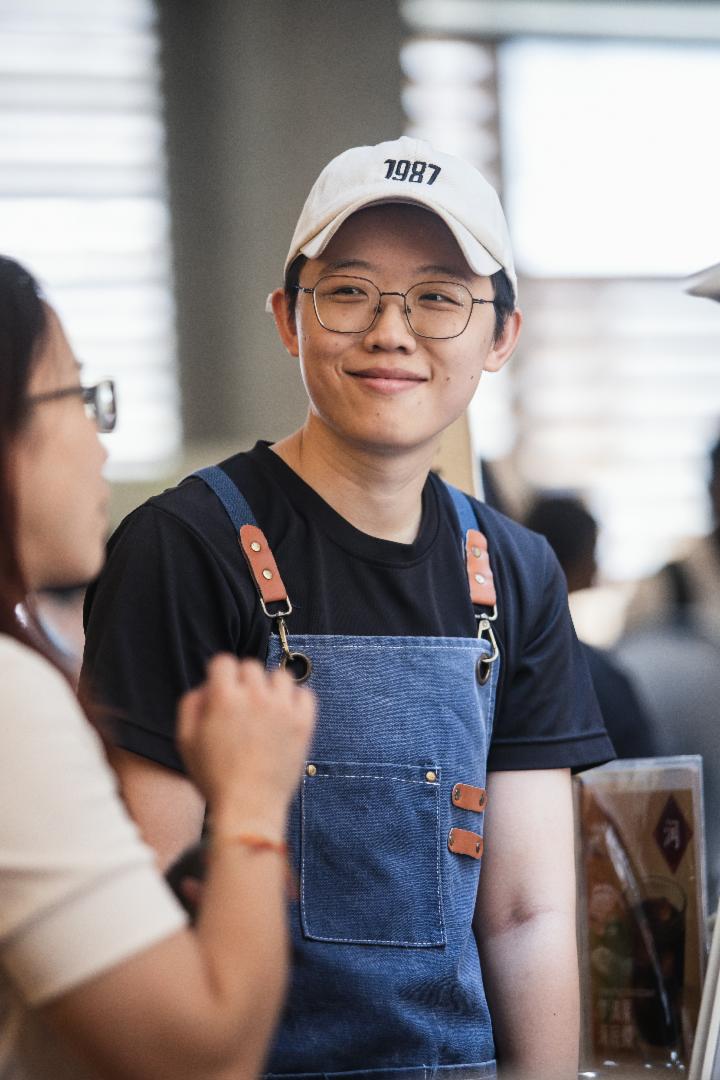 蔬汉堡摊位前站满顾客,谢晓青熟练地忙着手作蔬汉堡,她的伙伴告知大家:“卖完了,这是最后几个蔬汉堡了。”中午时刻,民众已经把斋堂挤得水泄不通,晓青精神奕奕地道:“大家对蔬汉堡的反应很好,三个小时就将百多个蔬汉堡卖光了。”