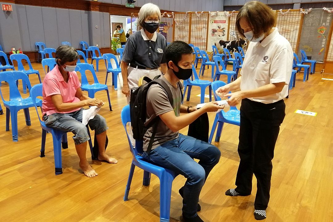 陈琳莲(虑佳)从事美发工作,自去年开始,因疫情关系,生意淡了,除了预约上门的顾客,她利用空档报名当志工。原本计划一星期两次值班,后来成为内场小组长之一,分担年长志工的任务。