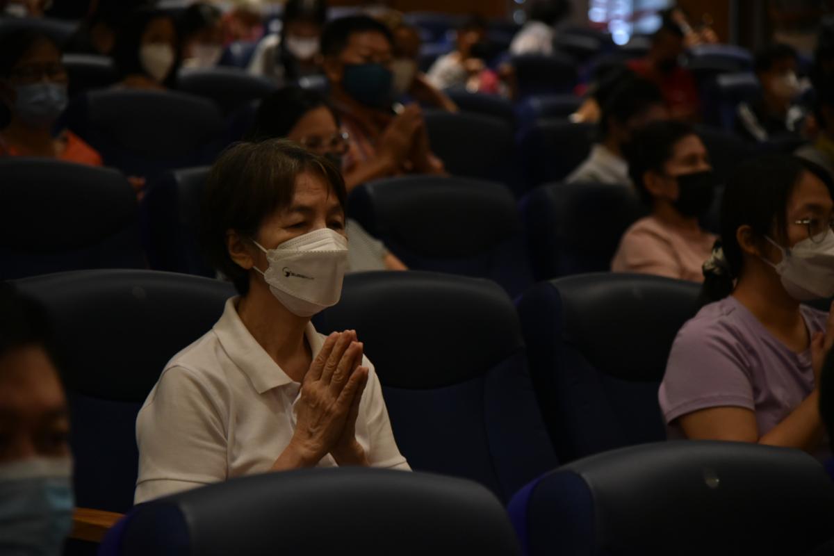 当司仪导读“只因众生虚妄记,六趣轮回苦难离”的经文,举例一位公务员因为一时贪念,投资“快速致富”的金钱游戏,结果堕入圈套损失惨重,这让会众潘国泰看到自己也是如此遭遇。