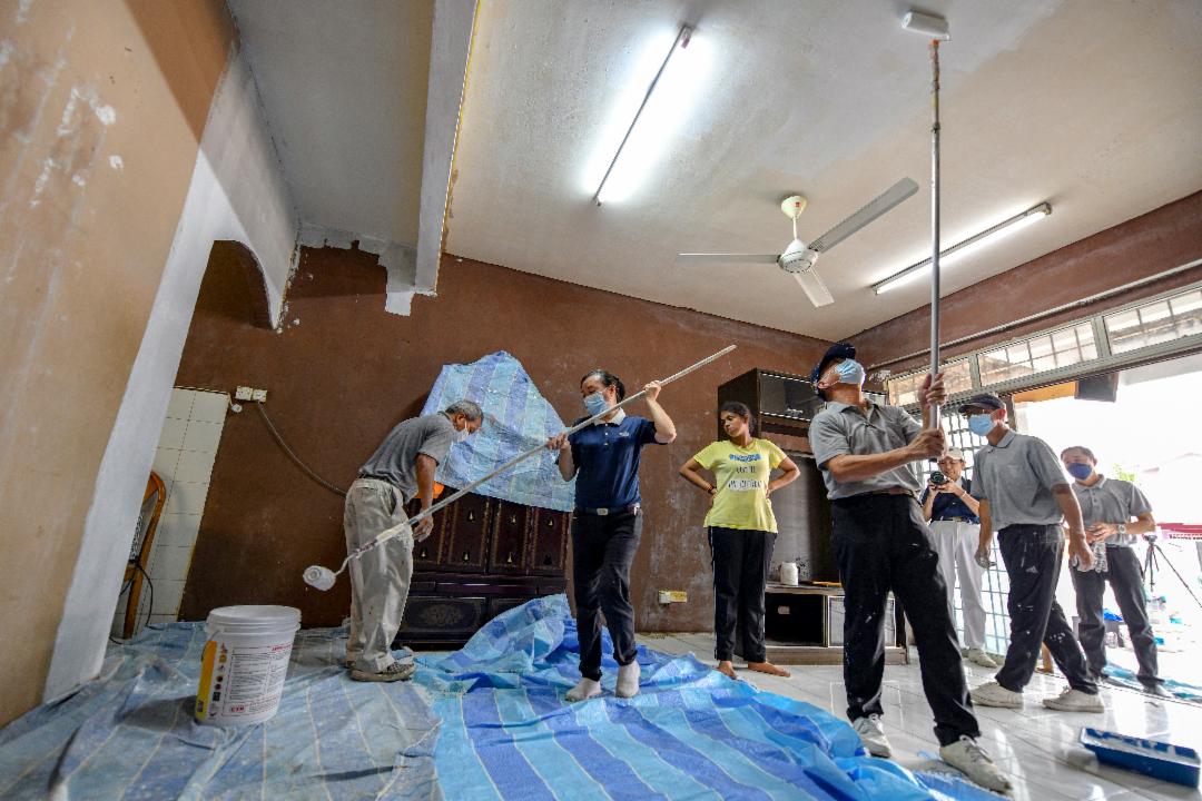 2025年10月18日,志工们一早便抵达万绕(Rawang)帕提班的家。从前院开始动手——清扫墙上厚厚的灰尘与蜘蛛网,拆除黏在铁门上的破旧防网。随后,大家分工合作,先为前院与小铁门重新上漆,接着进屋搬移家具、进行粉刷、更换灯管、安装厨房橱柜,最后在大门加装铁网,以防老鼠再度入侵啃食帕提班溃烂的脚。整个过程井然有序,洋溢着互助的温度。