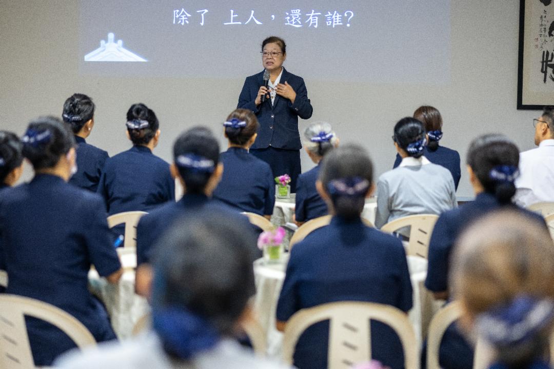 “带动而非指挥”校长强调,慈济的“领导”不是下命令,而是带动会众、陪伴新人。她举例,有志工因忙碌而常迟到早退,干部们没有责备,反而持续关怀,最后让她坚持留下。这份耐心与信任,正是领导者该有的温度。