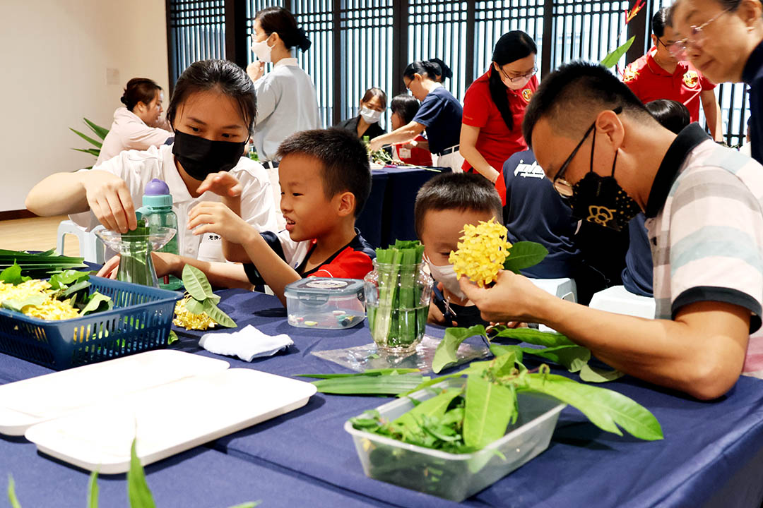 活动以轻松的方式拉开序幕,一首大人小孩都耳熟能详的〈捉泥鳅〉进行破冰,让大家玩得不亦乐乎,笑声不断,打破了隔阂。接着,透过亲子共同作画、插花、制作三明治、手工粘土等,让亲子互动乐融融。