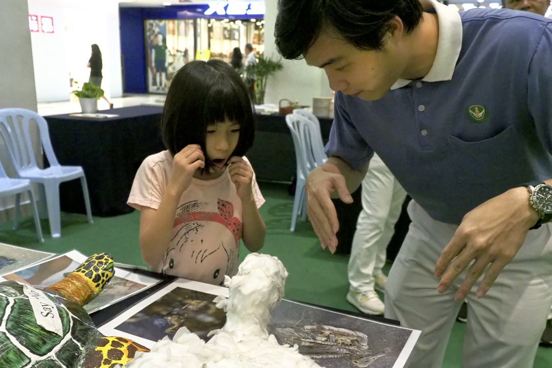 现年十四岁的阿丽安娜(Aliana Lim)来到环保展区,她明白过度的能源消耗会导致地球升温、冰雪融化,但却从来没有尝试把环保落实在生活中。她坦言:“今天我学到了很多东西,也了解到很多创新的环保技科,例如铝箔包经回收后,可以制作成笔记本和其他用品。海洋生物资料图表,使我充分理解到自己缺乏环境保护意识。”对于政府实行禁用塑料吸管的措施,她也表示支持,“使用一次性的塑料吸管是贪一时之便而已,解决方案就是拒用。”
