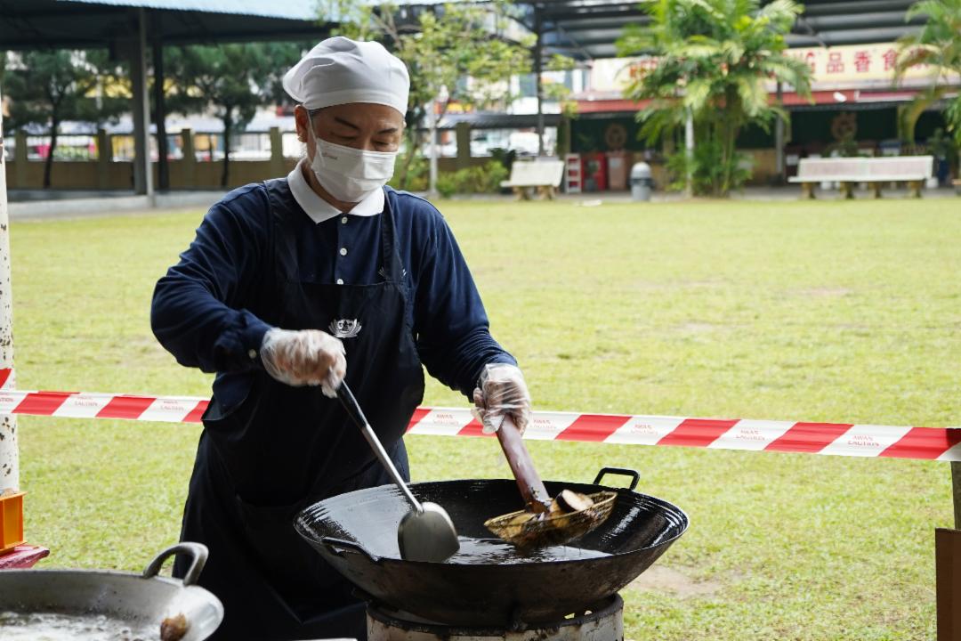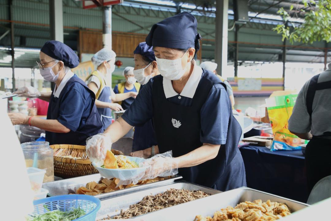 在众多热气腾腾的摊位中,炒粿条与爪哇面(Mee Jawa )香气扑鼻,吸引无数民众。忙着翻炒、满脸笑容的师姊,就是旺沙玛珠的颜荣来(慈恺)。她说:“魏碧华师姊邀请我,我就答应了。没问题啦!”她笑声洪亮,语气里满是豪爽与慈悲。